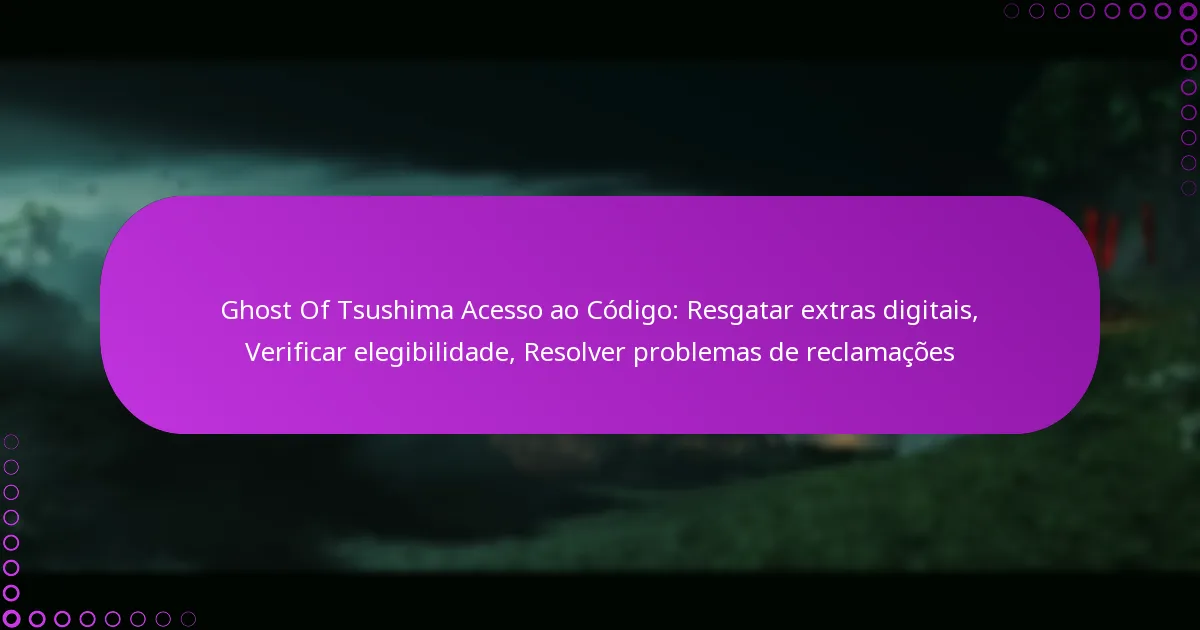 Resgatar códigos para conteúdos digitais em Ghost of Tsushima é um processo simples que pode melhorar a sua experiência de jogo. Para aceder com sucesso a estes bónus, os jogadores devem garantir que cumprem os critérios de elegibilidade, incluindo a compra de uma edição qualificada dentro do prazo especificado. Se encontrar algum problema durante o processo de resgate, resolver erros comuns pode ajudá-lo a resolver problemas rapidamente e a desfrutar do seu conteúdo adicional.