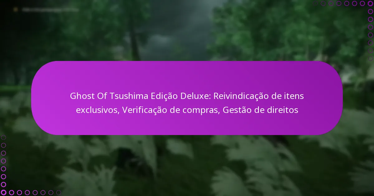 Para a Edição Deluxe de Ghost of Tsushima, os direitos normalmente abrangem itens como a skin Hero of Tsushima, conjuntos de armaduras adicionais e armas únicas. Os jogadores devem familiarizar-se com a lista completa de conteúdo incluído para garantir que estão a tirar o máximo proveito da sua compra.