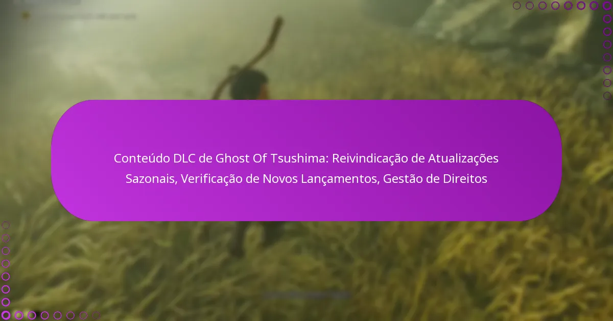 As atualizações sazonais para o DLC de Ghost of Tsushima são lançamentos de conteúdo periódicos que introduzem novas funcionalidades, melhorias na jogabilidade e eventos comunitários. Estas atualizações mantêm o jogo fresco e envolvente para os jogadores, oferecendo novos desafios e recompensas.