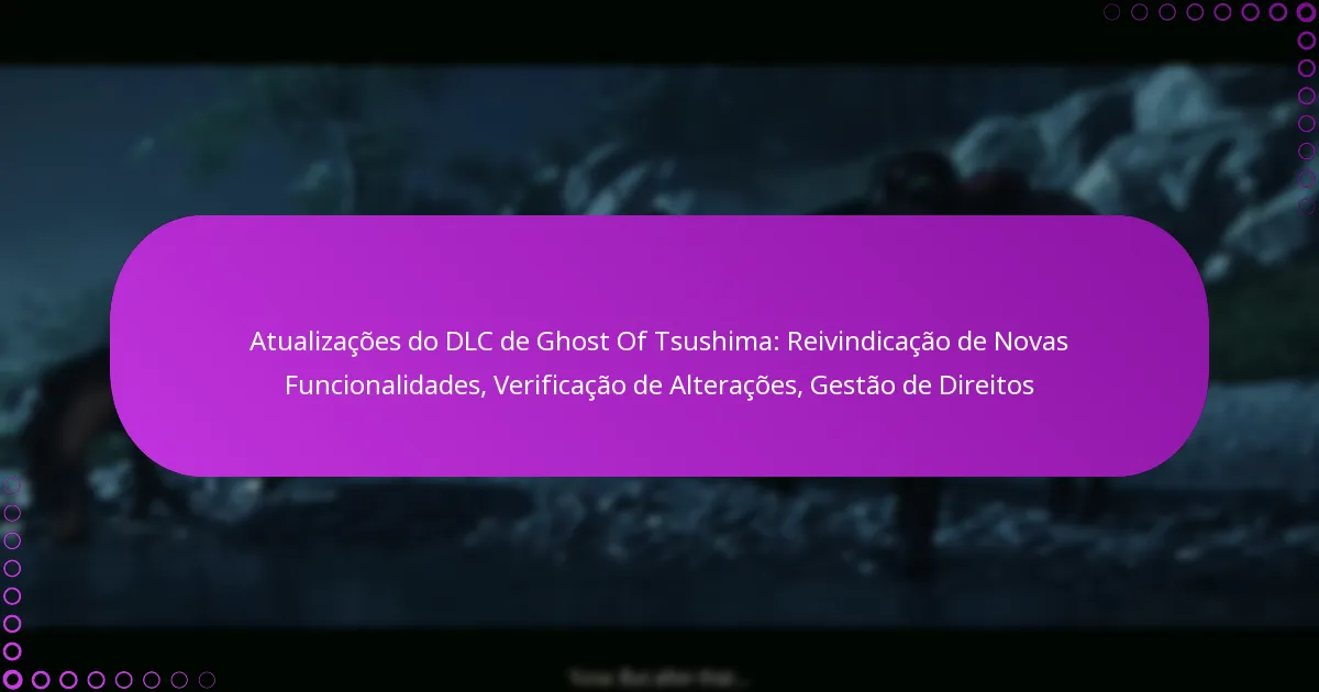 As atualizações mais recentes do DLC para Ghost of Tsushima trazem uma série de novas funcionalidades que melhoram a jogabilidade e expandem a história. Os jogadores podem explorar novas mecânicas e melhorias de personagens enquanto desfrutam de um desempenho aprimorado e atualizações visuais. Para se manter informado sobre as mudanças, os jogadores podem utilizar os registos de alterações dentro do jogo e discussões na comunidade, garantindo que aproveitam ao máximo a sua experiência de jogo. Além disso, gerir os direitos de forma eficaz ajudará os jogadores a reivindicar o conteúdo adquirido e a resolver quaisquer problemas de acesso.