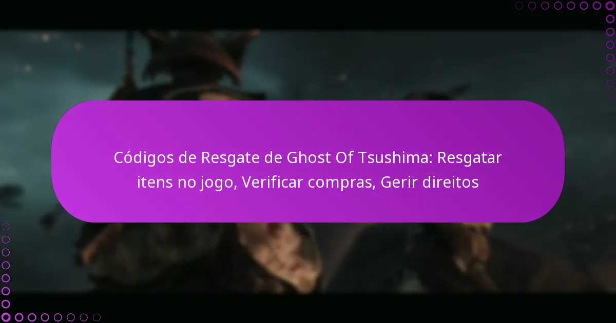 Gerir os seus direitos em Ghost of Tsushima envolve verificar as suas compras, consultar os itens disponíveis no jogo e garantir que estão ligados à conta correta. Este processo assegura que pode aceder ao conteúdo que ganhou ou comprou sem problemas.